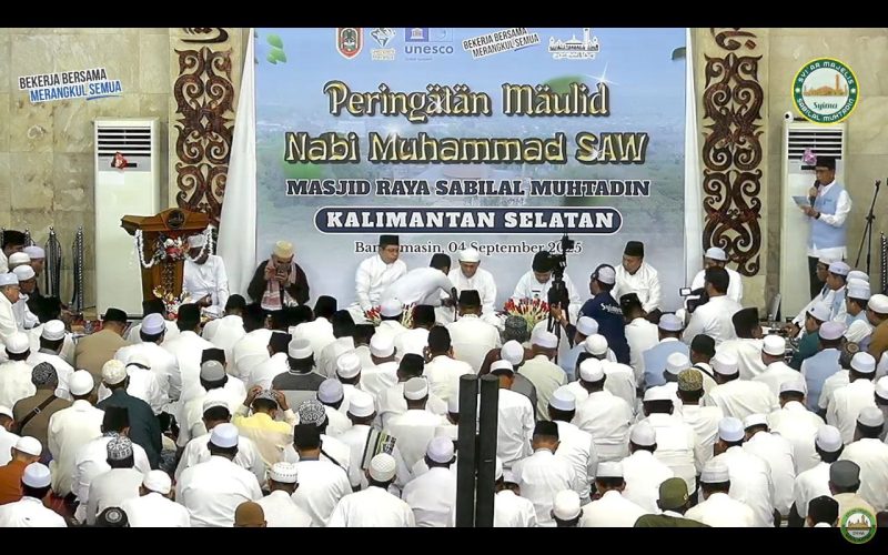 BANJARMASIN – Wakil Gubernur Kalimantan Selatan (Kalsel), Hasnuryadi Sulaiman, menghadiri peringatan Maulid Nabi Muhammad SAW yang digelar di Masjid Raya Sabilal Muhtadin Banjarmasin, Kamis (4/9/2025).