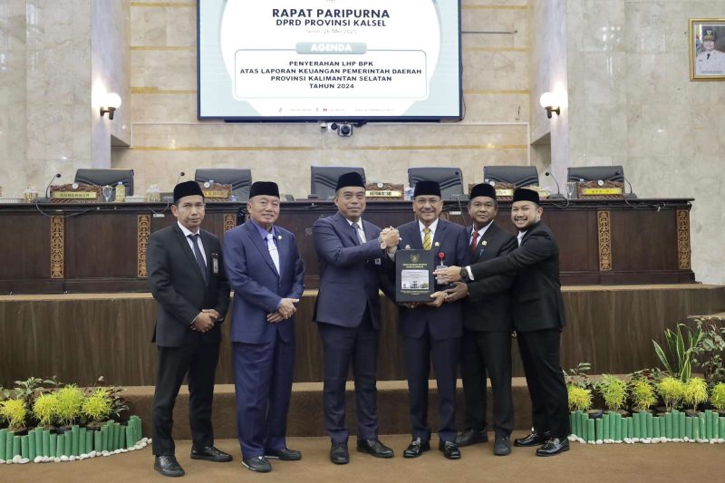Penyerahan Buku Laporan Hasil Pemeriksaan (LHP) dan Ikhtisar Hasil Pemeriksaan Daerah (IHPD) dilakukan dalam Rapat Paripurna DPRD Kalsel pada Senin (26/5/2025). Dokumen tersebut diserahkan langsung kepada Gubernur Kalsel, Muhidin, dan Ketua DPRD Kalsel, Supian HK oleh Staf Ahli Bidang Keuangan Pemerintah Pusat BPK RI, Dr. Ahmad Adib Susilo, yang mewakili pimpinan BPK RI.